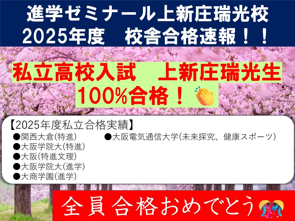【上新庄瑞光校】㊗ 2025年度私立第一志望100%合格!🎊