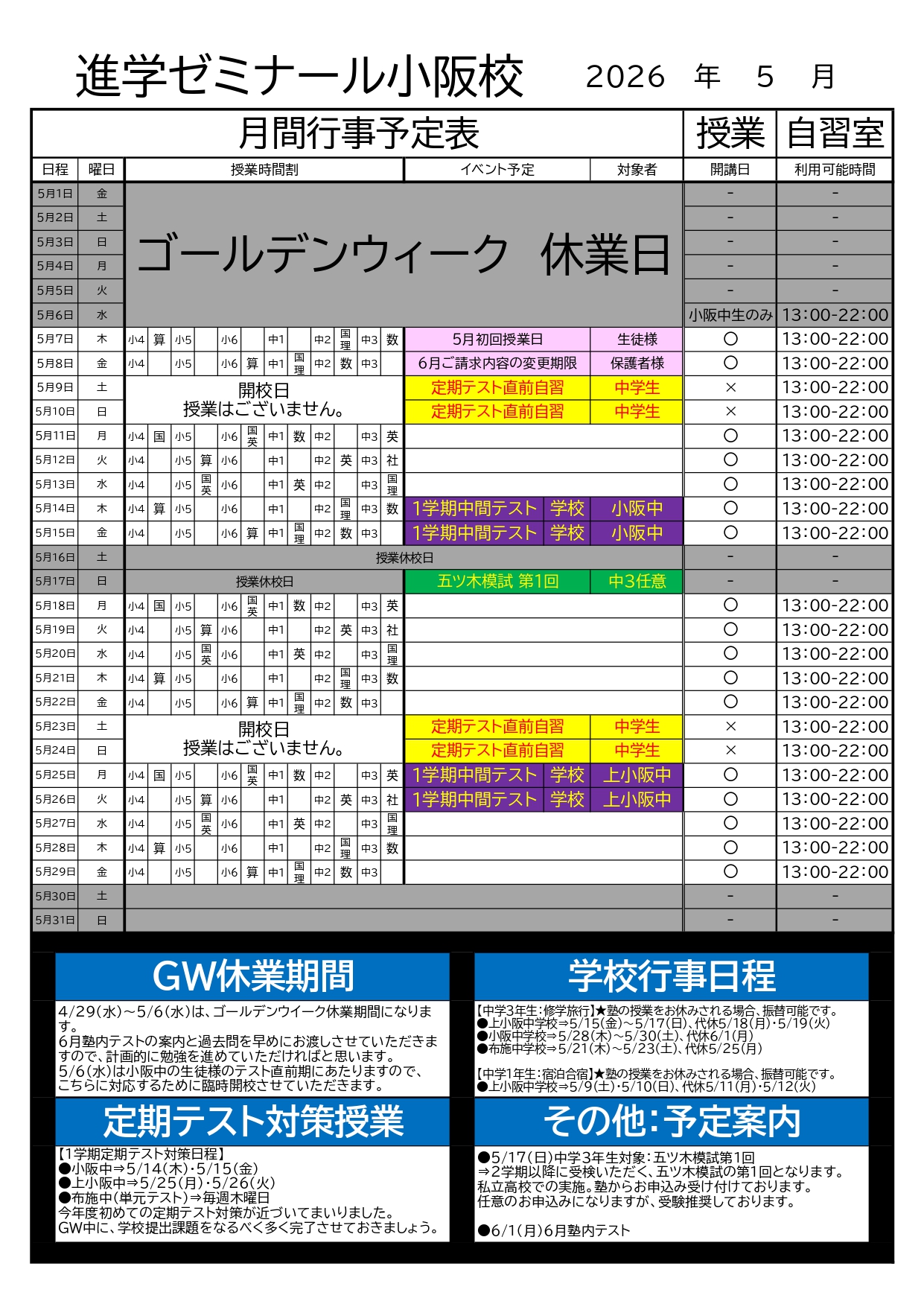 ホーム›校舎ブログ›【2026年度5月:月間予定表】