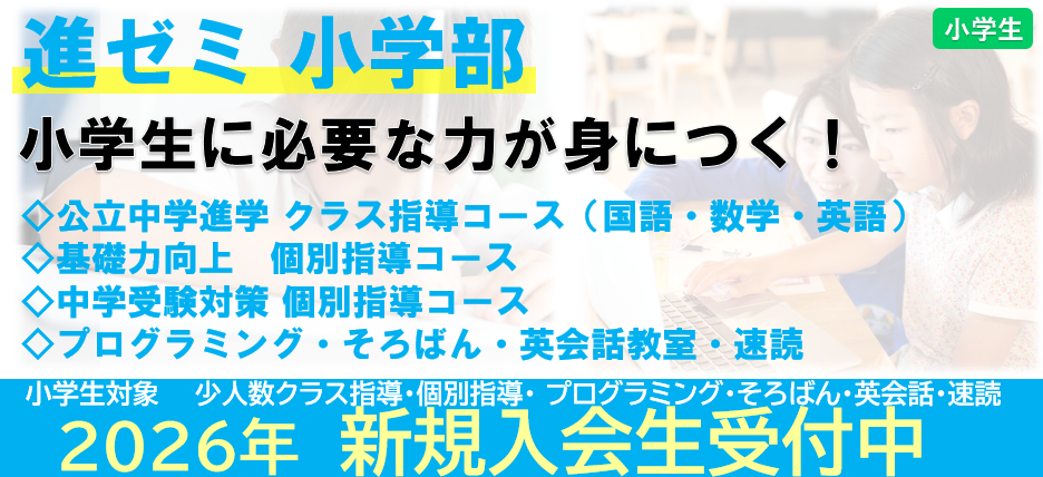 進学ゼミナールの小学部では、第一に基礎学力と正しい学習姿勢の確かな定着、次に高い学力の習得を目指し、日々の授業で、自分で考え行動できる子になっていけるよう指導をしております。