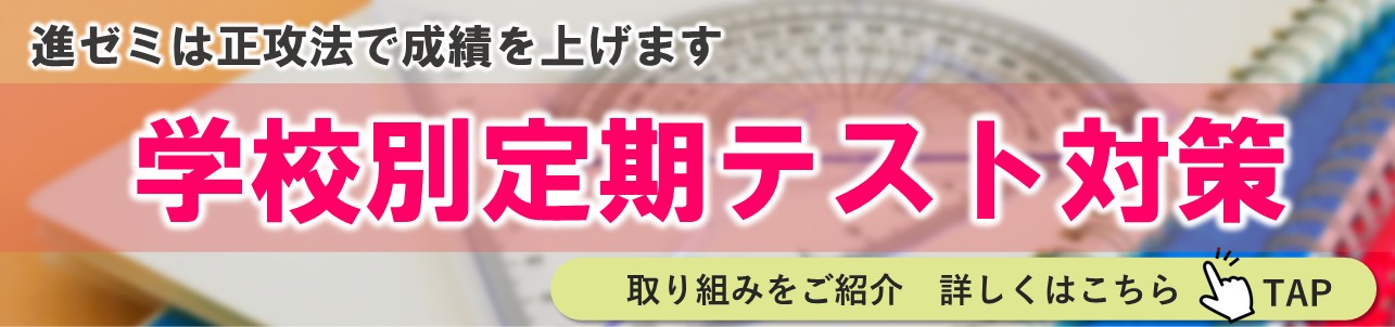 各学校に応じたテスト対策授業を展開します。テストの2~3週間前から学校別に定期テスト対策を行います。対策授業では各学校の出題傾向をふまえながら、正答率を高めておくべき問題を反復していきます。またテスト勉強が円滑に進むように、生徒面談やテスト勉強会を実施し勉強のリズムを作っていきます。豊富なデータに基づいた授業と定期テスト対策に集中できる環境が進学ゼミナールのテスト対策の魅力です。