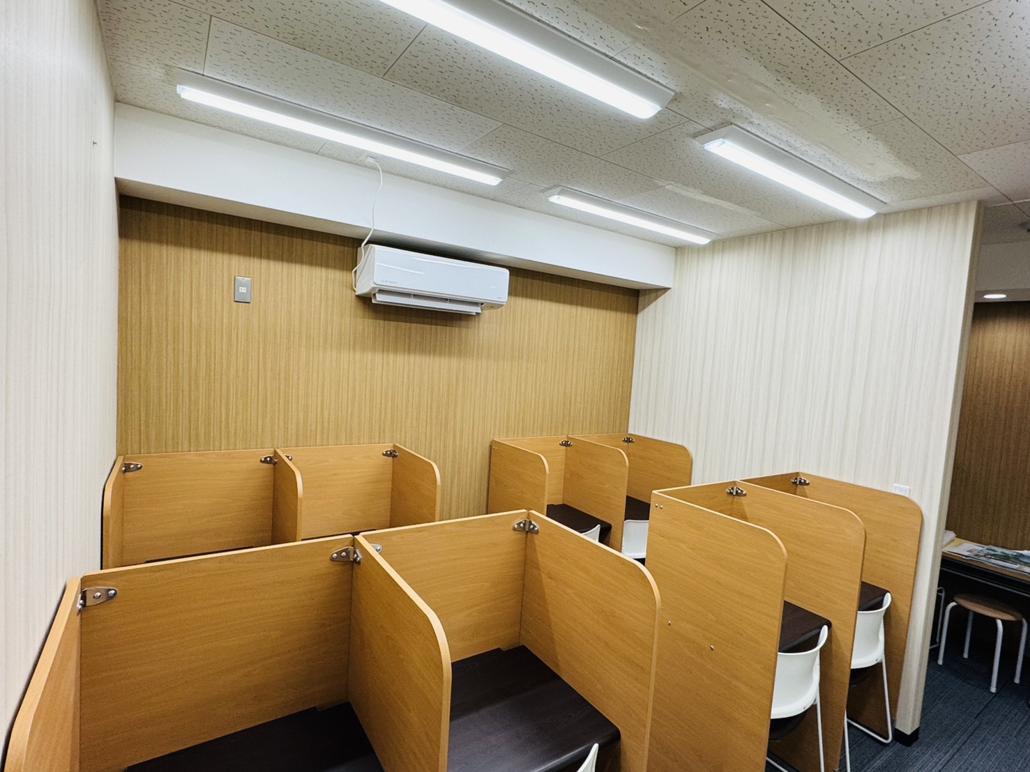 普段進ゼミに通っていない曜日・時間帯でも自由に利用することができる自習ブース。小学生・中学生・高校生までみなさん積極的に利用してくれます。